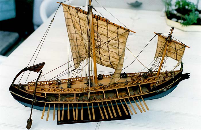 * Segelschiffe, entworfen um das 6. Jahrhundert n. Chr. Die Takelage kann variiert werden.