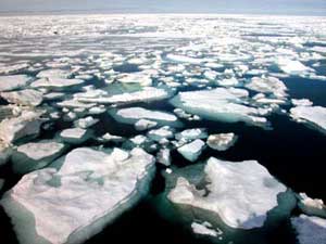 Die Strömung trägt Trümmer der im Sommer zerbrochenen Eisscholle aus dem hohen Norden mit sich. Das Eis ist sehr nah, was bedeutet, dass die Meeresoberfläche fast flach wird, einfach eingelullt durch den langsamen Rhythmus des Wellengangs. Das ist das Paket.